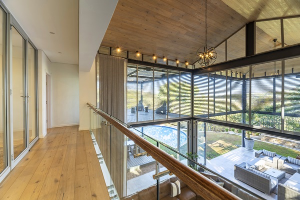 Challenge: The site had spectacular views, but was particularly small with an existing terrace that had been chiselled out of the hill, by the former owner. Access to the site was via a steep driveway that had been partially eroded over many years of neglect, and the views were principally to the west (and not optimally oriented for heat gain and accute late afternoon sunshine).