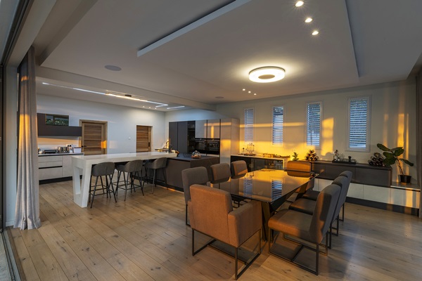 Our task was to try to fit in a four bedroom house onto a relatively small footprint, and maximise views to living areas, but mitigate against solar gain in the late afternoon. Aesthetically our brief was to study Tuscan living but to reinterpret it in a modern way that was context specific.